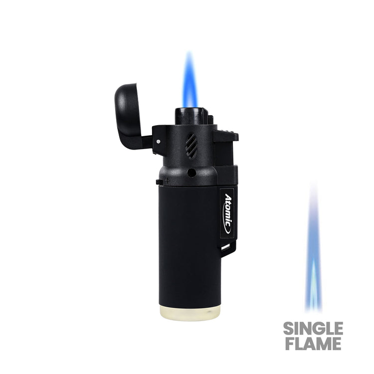 Se alleAtomic Bullet lighteren er en ideel lighter til daglig brug. Denne lighter har en stærk jetflamme, og ved antænding åbner låget automatisk. Låget sikrer, at snavs ikke kan komme ind i antændingen.